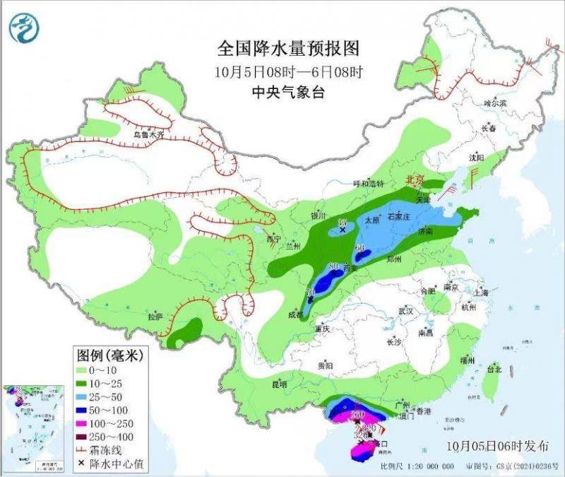 r预计5日,海南岛大部、广东西南部、广西南部等地部分地区有暴雨到大暴雨,局地特大暴雨(250~320毫米)。南海西北部海域、琼州海峡、北部湾北部海域、广东雷州半岛及沿海、广西沿海、海南岛东部和北部沿海风力9~11级,阵风12~13级;部分海域或地区风力可达12~14级,阵风15~16级。